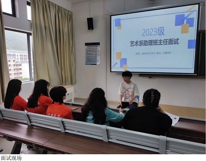 本网讯(艺术系新闻中心 王小洁/钟紫霞)艺术系2023级新生助理班主任招聘于2023年4月18日圆满完成。本次面试本着公开、公平、公正的原则,意在让每位面试者都能够展示自我的机会,最终选拔出拥有良好政治思想素养、热爱员工工作、热心为老师和同学负责的助理班主任。希望2023级艺术系助理班主任在今后的工作中可以引领新生,帮助新生更好的融入大学校园生活。